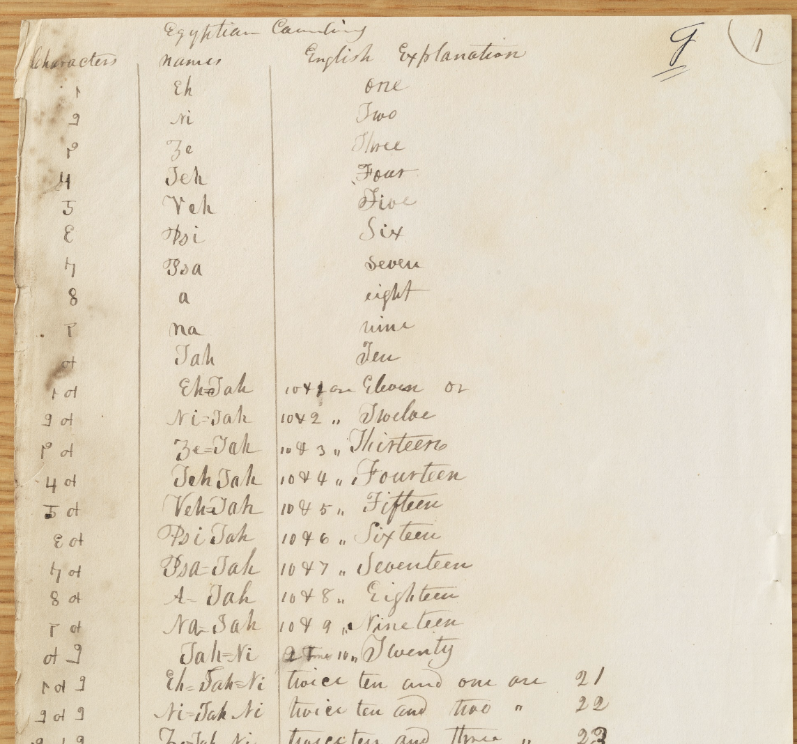 Nem kellett foglalkozni Smith többi kéziratával sem, amelyek az ÁK fordítása közben keletkeztek. Az Egyptian Counting pár oldalon az egyiptomi számokat, az Egyptian Alphabet pedig az ábécét igyekezett – nincs rá jobb szó – kitalálni.